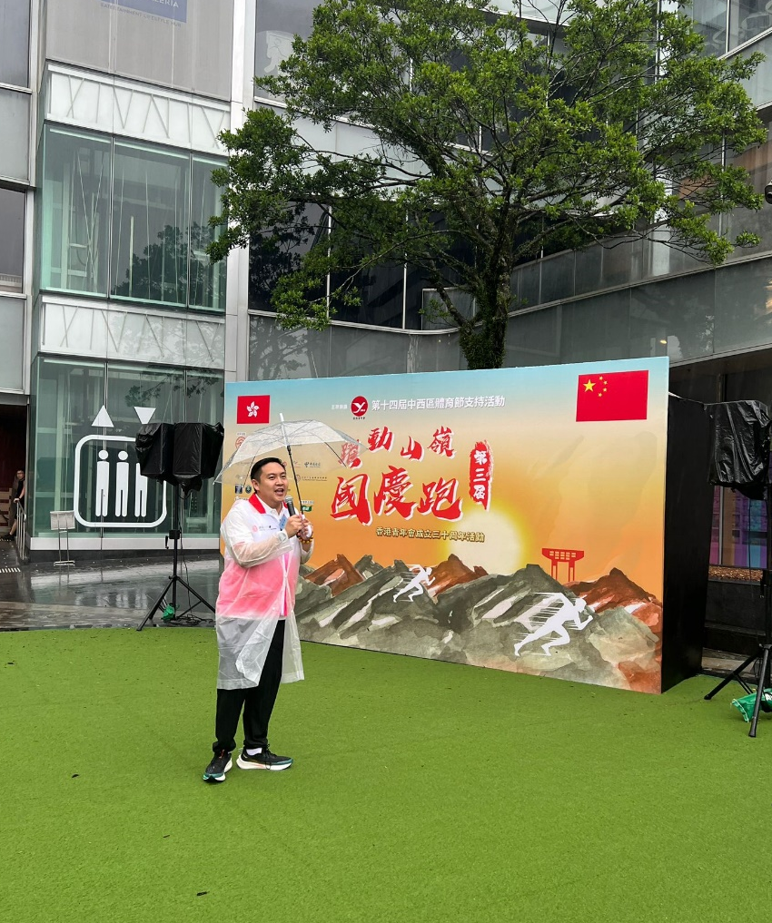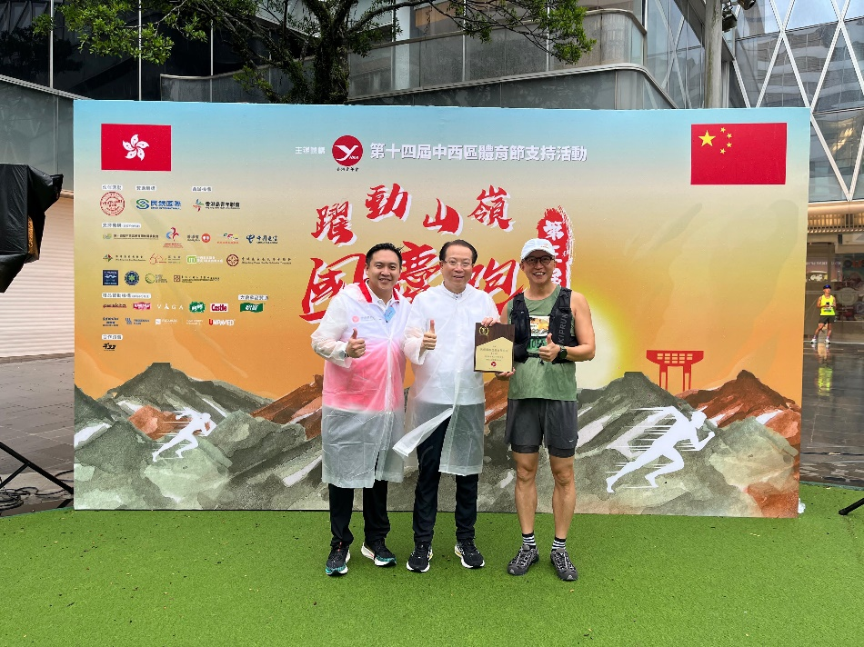 當日主禮嘉賓有中央人民政府駐香港特別行政區聯絡辦公室港島工作部副部長楊成偉先生、民政及青年事務局青年專員陳瑞緯先生、香港警務處西區警區指揮官葉嘉儀總警司、香港警務處中區指揮官林穎濠署理總警司、中國香港足球總會會長及中國香港群眾體育聯會會長貝鈞奇先生S.B.S., M.H. 、第十四屆中西區體育節統籌委員會執行主席林振風先生M.H. 、中國電信國際有限公司總經理尹進先生、民銀資本控股有限公司副總經理郭基智先生、中西區區議員張宗先生、上海浦東發展銀行香港分行行長賈紅睿先生等等;支持機構嘉賓代表有香港中國企業協會常務副主席張琪騰先生M.H. 、香港島各界聯合會中西區地區委員會主席羅錦輝先生、香港區家長教師會聯會常務副主席劉穎欣女士、匡智會副總幹事(服務)李鳳儀女士、善導會高級經理、香港傷健共融網絡創辦人及總幹事莫儉榮先生及碳中和協會主席周子軒先生等等親臨出席,參與開幕及鳴槍儀式。現場超過六百名青年及市民熱情參與,氣氛高漲。民銀資本控股有限公司副總經理郭基智先生指出:作為本次國慶活動的贊助方,我們感受到香港不同年齡群體的蓬勃活力。關愛共融是社區核心議題,這次活動充分彰顯社會各界齊心協力,共同推動包容發展。